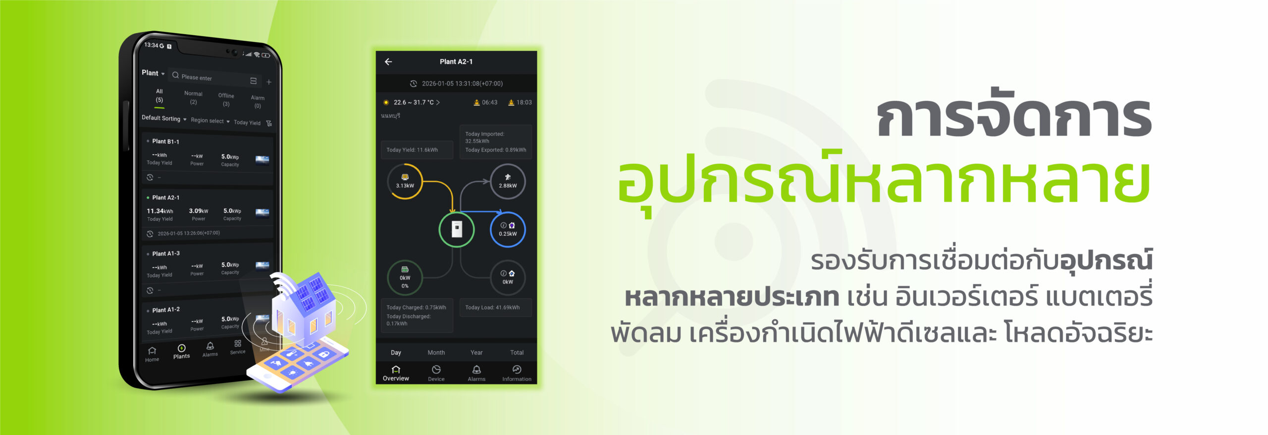 รองรับการเชื่อมต่อและบริหารจัดการอุปกรณ์หลากหลายประเภท เช่น อินเวอร์เตอร์ แบตเตอรี่ พัดลม เครื่องกำเนิดไฟฟ้าดีเซล UPS และโหลดอัจฉริยะ
