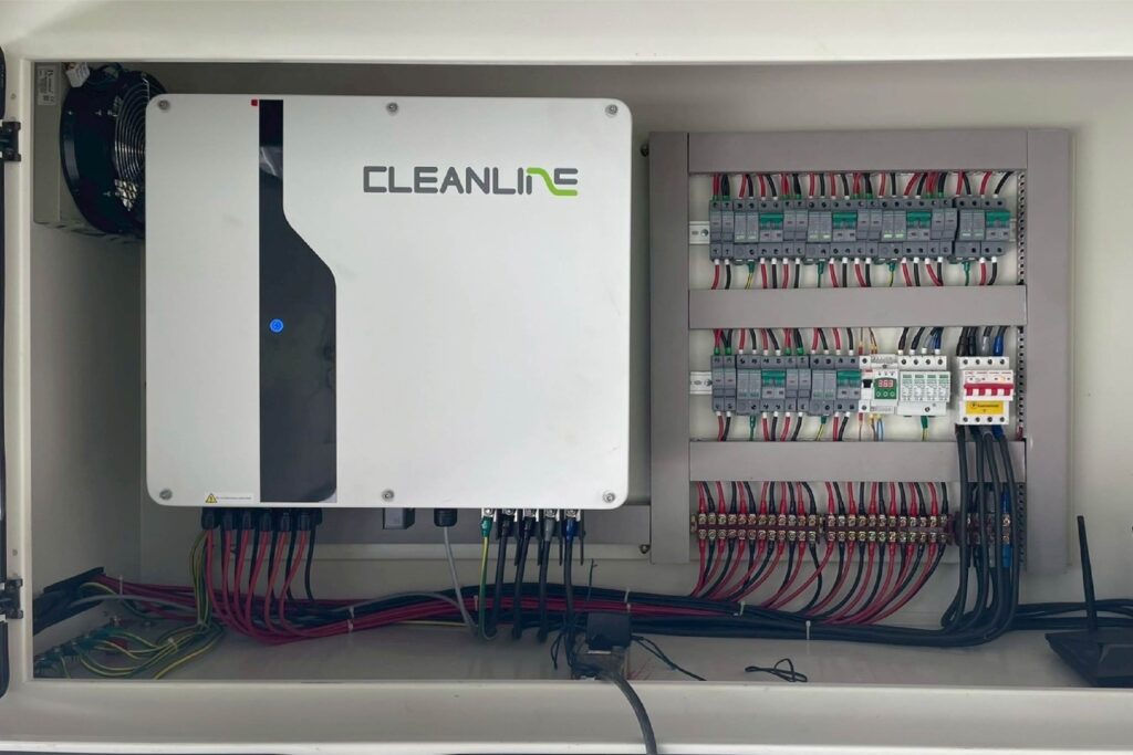ที่ อ.บางกรวย จ.นนทบุรี ติดตั้ง Cleanline Inverter ขนาด 30 kWp 3 Phase ประกอบธุรกิจ รับเหมาก่อสร้าง ใช้แอร์ขนาดใหญ่ BTUสูง หลายเครื่อง รวมทั้งเครื่องจักรกลและไฟส่องสว่าง เปิดใช้งานช่วงกลางวัน เจ้าของร้านจึงเลือกติดตั้ง Cleanline Solar Inverter กับบริษัทที่เชี่ยวชาญด้านระบบไฟฟ้ามากกว่า 26 ปี