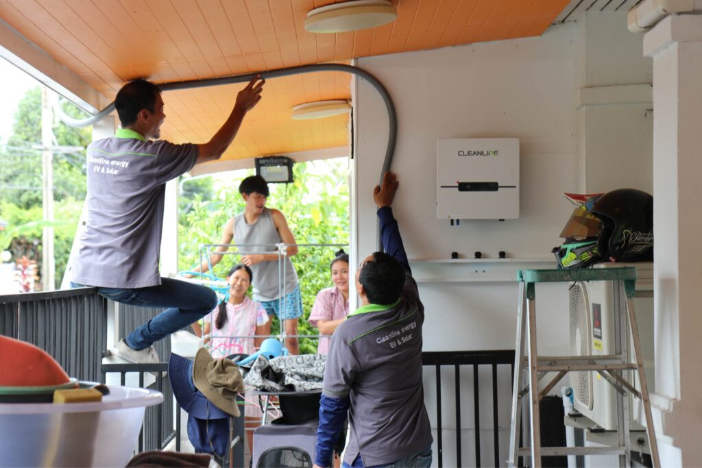 ที่ อ.บางบัวทอง จ.นนทบุรี ติดตั้ง Cleanline Inverter ขนาด 5 kWp 1 Phase ธุรกิจ Home office ใช้แอร์ขนาดใหญ่ BTUสูง และไฟส่องสว่าง เปิดใช้งานช่วงกลางวัน เจ้าของร้านจึงเลือกติดตั้ง Cleanline Solar Inverter กับบริษัทที่เชี่ยวชาญด้านระบบไฟฟ้ามากกว่า 26 ปี